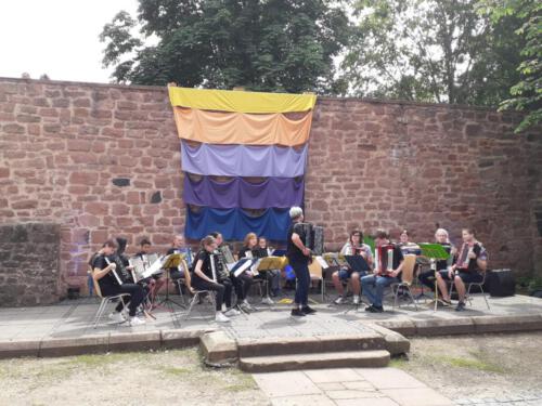 Wir bemühten uns dennoch, einen schönen Abend miteinander zu verbringen, vielen hat es gefallen, mache verfolgten mit vorsichtigem Wohlwollen unsere Aktivitäten und einige wenige fühlten sich belästigt und brachten das lautstark zu Ausdruck. Denen mag gesagt werden, dass es wesentlich übleres gibt in diesen Zeiten, als dem unprofessionellen Musizieren und Tanzen junger Menschen ausgeliefert zu sein.